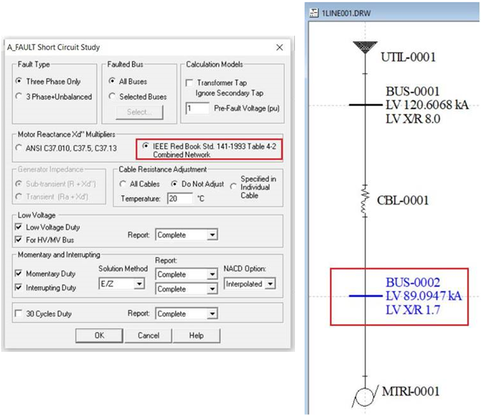 When the "IEEE Red Book" option is selected, Table 4-2 will be used and a factor of 1.2 will be used for the motor.