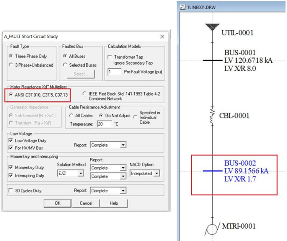 In the example below, when 'ANSI C37" option is selected, no factor will be used for the LV SC study.
