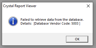 This error occurs when the project's PPE table has too many characters for the Crystal Reports. Because Crystal Reports is limited to a certain number of characters, such as this one that is causing the issue: