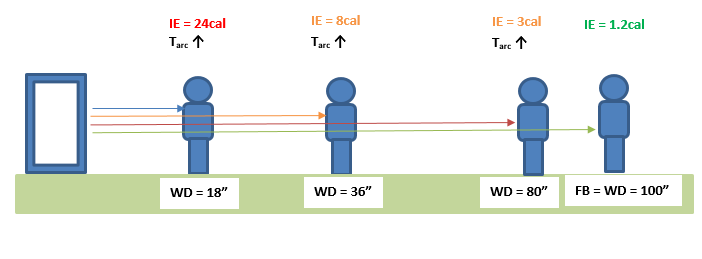 Working distance (WD) is the distance between the worker and the equipment. An Incident Energy (IE) at a corresponding working distance can be calculated. The closer the worker is from the equipment, the higher the IE.