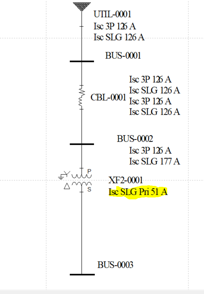 Please see the snap shot below where the faulted bus is BUS-0002 and there is a 51A SLG current flowing back to the primary of the transformer.