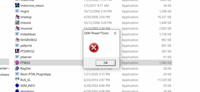 When opening PTW, a blank error message is shown below: