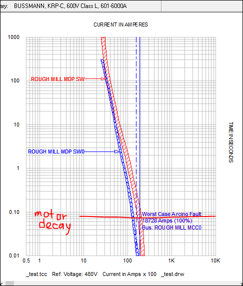 The difference is due to the order of tripping. When KRPC fuse is used, it is the first device to trip before the motor decays. The accumulation of IE stops on the first device as it clears most of the fault (80%). This results to a lower IE of 2.9. With KLLU fuse, it is tripping after the motor decays as seen in the plot below. Thus, the IE is calculated with the motor decay first which results to 8.1, then add the IE of 2.9 when the fuse trips, which totals to 11.