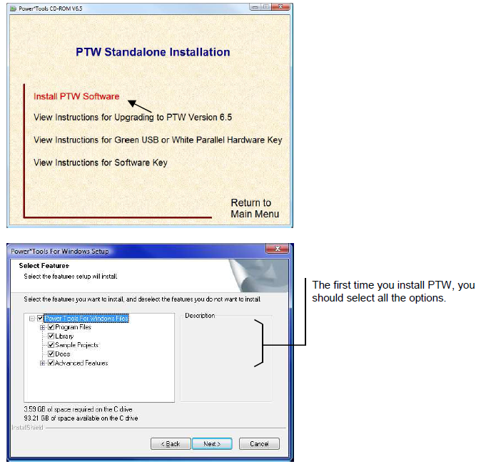 2. Click the “Install Power*Tools for Windows (PTW) Software” option. 3. PTW will begin the installation process. When you get to the options screen, you should install all parts of the software, especially if this is the first time you are installing PTW.