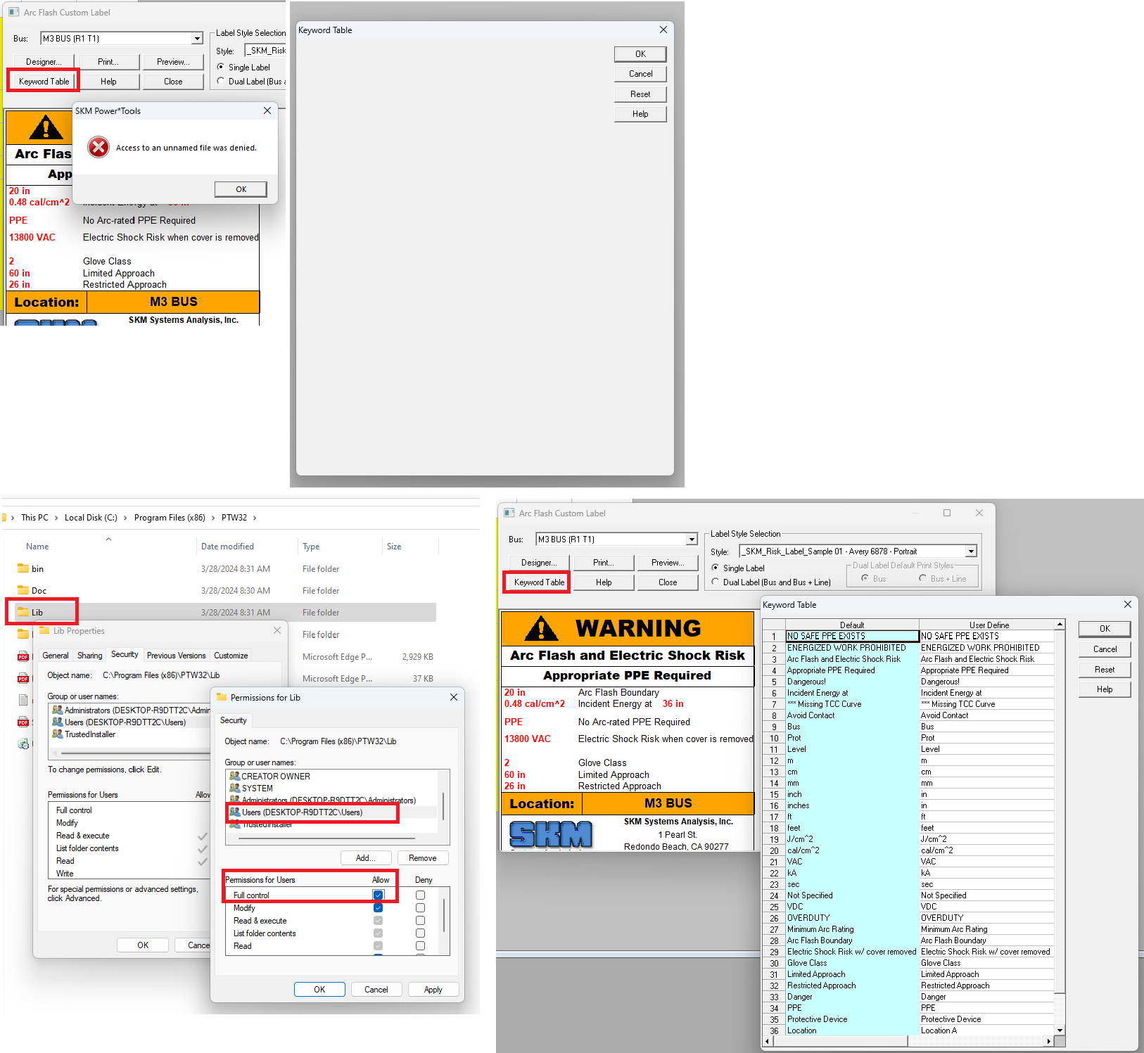 Arc Flash Keyword Table “Access to an unnamed file was denied”