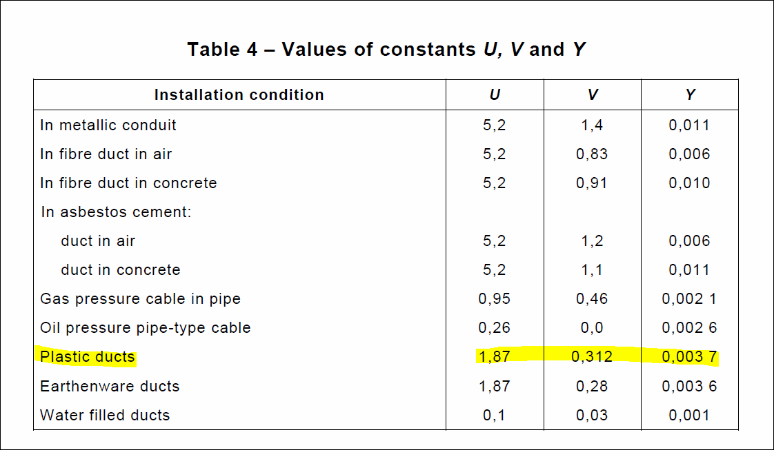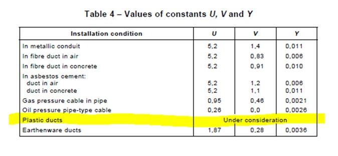 Answer: The IEC 60287-2-1:2001 standard has no available constants for the PVC conduit. See below image: