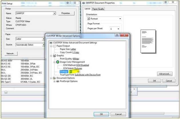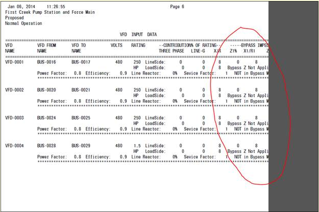 Client printed INPUT.RPT (Text report) to the PDF using SKM PDF where in VFDs section in the input report cuts off the text from the actual report as shown in below screenshot 1, In order to fix the issue, user would need to adjust the scaling factor available in the SKMPDF printer properties/under Advanced options. (change the scaling to 90% or 85% trial and error and see if it gets printed fine)