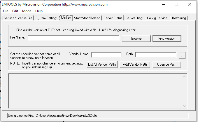 Also, try under Utilities, add Vendor Name: MDAXBBWC, Path: path to ptw32x.lic file, and Override Path.