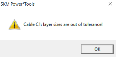 Running the Cable Ampacity study prompts the error message "Cable <Name>: Layer sizes are out of tolerance!".