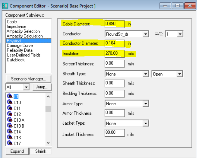 When this occur, check the cable's Physical data to ensure that it has the data filled in. It needs to have the Cable diameter, Conductor diameter, and Insulation information at the very least. The standard PTW library have these data filled in at the minimum. This error is more likely to occur with cables that has no associated library or is using a custom cable library. If these data are filled in and the error still shows, verify that the conductor diameter and its layers does not exceed the Cable diameter by a great amount.