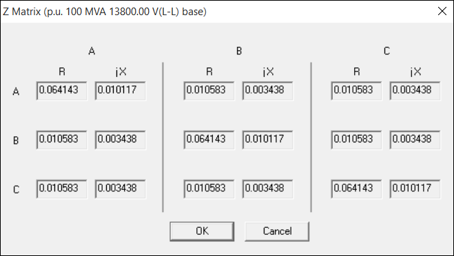 Z0 = (0.064143 + j0.010117) + 2*(0.010583 + j0.003438)